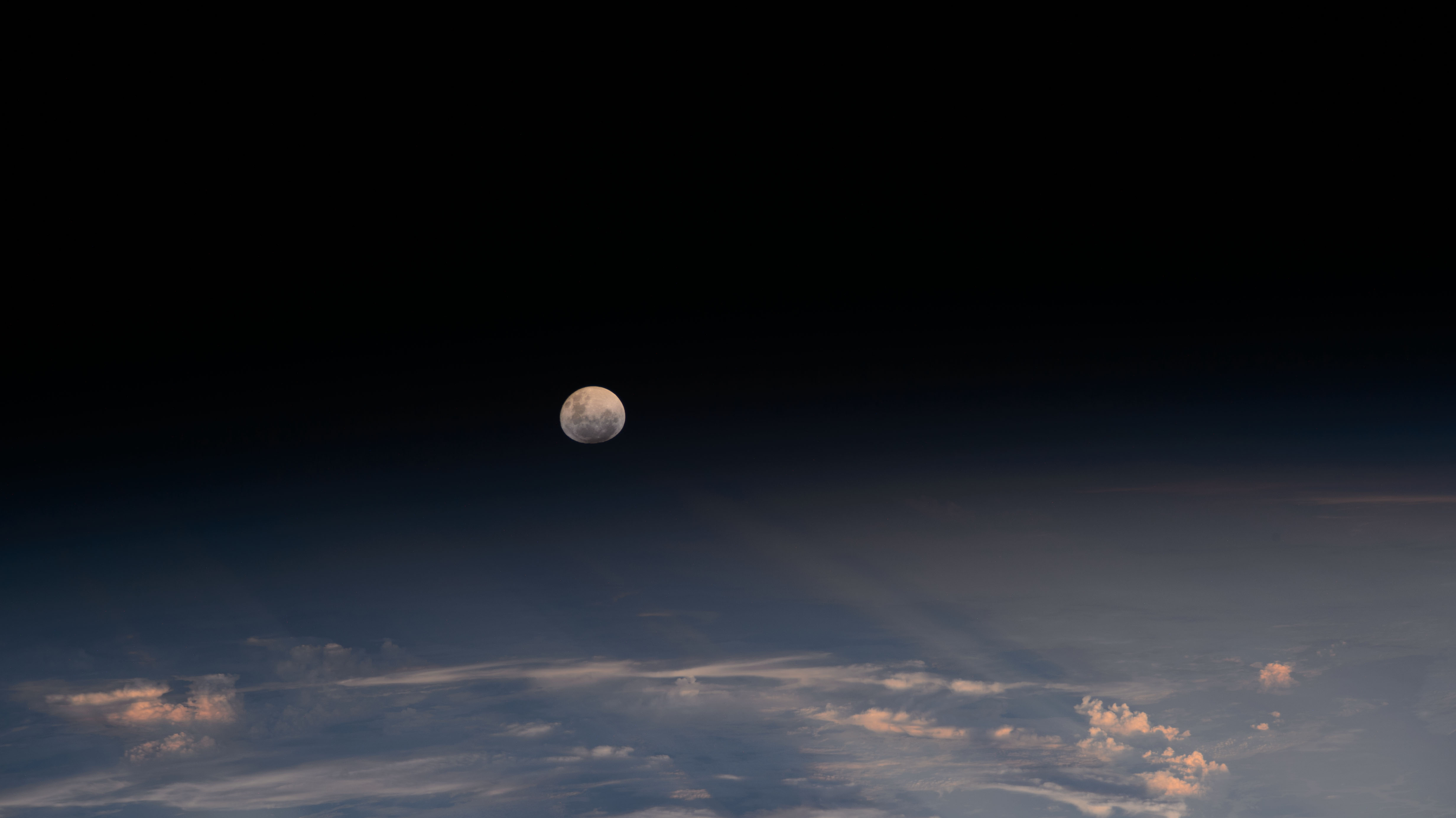 Read MoreThe Moon’s light is refracted by Earth’s atmosphere, giving it a spheroid shape in this April 13, 2025, photograph from the International Space Station as it orbited into a sunset 264 miles above the border between Bolivia and Brazil in South America.