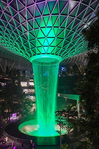 <td><div lang="en" dir="ltr" class="description en">The Rain Vortex at night. The world's largest and tallest indoor waterfall, 40 metres (130 ft) high. In Jewel Changi Airport, Singapore</div>