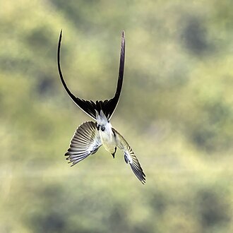 Fork-tailed flycatcher (Tyrannus savana monachus), chasing prey in Cayo, Belize. This is what the bird looks like when it is flying normally, but not grabbing an insect.